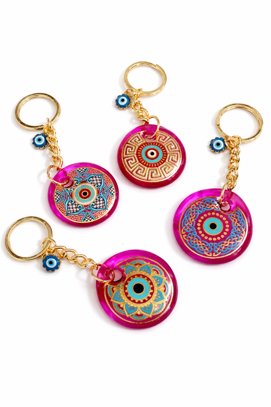 Midnight Magenta Glass Evil Eye Keychain