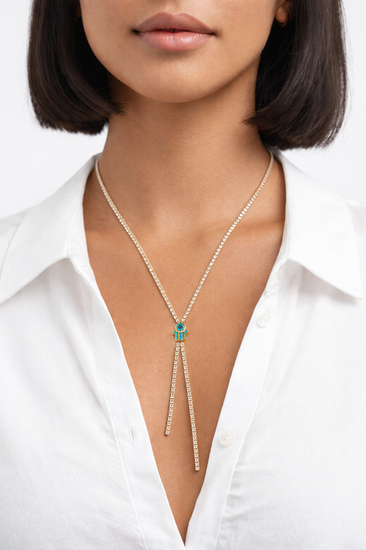 Hamsa Crystal Drop Protection Necklace