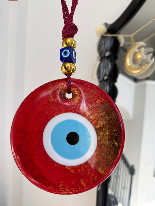 Ruby Golden Glass Evil Eye Amulet