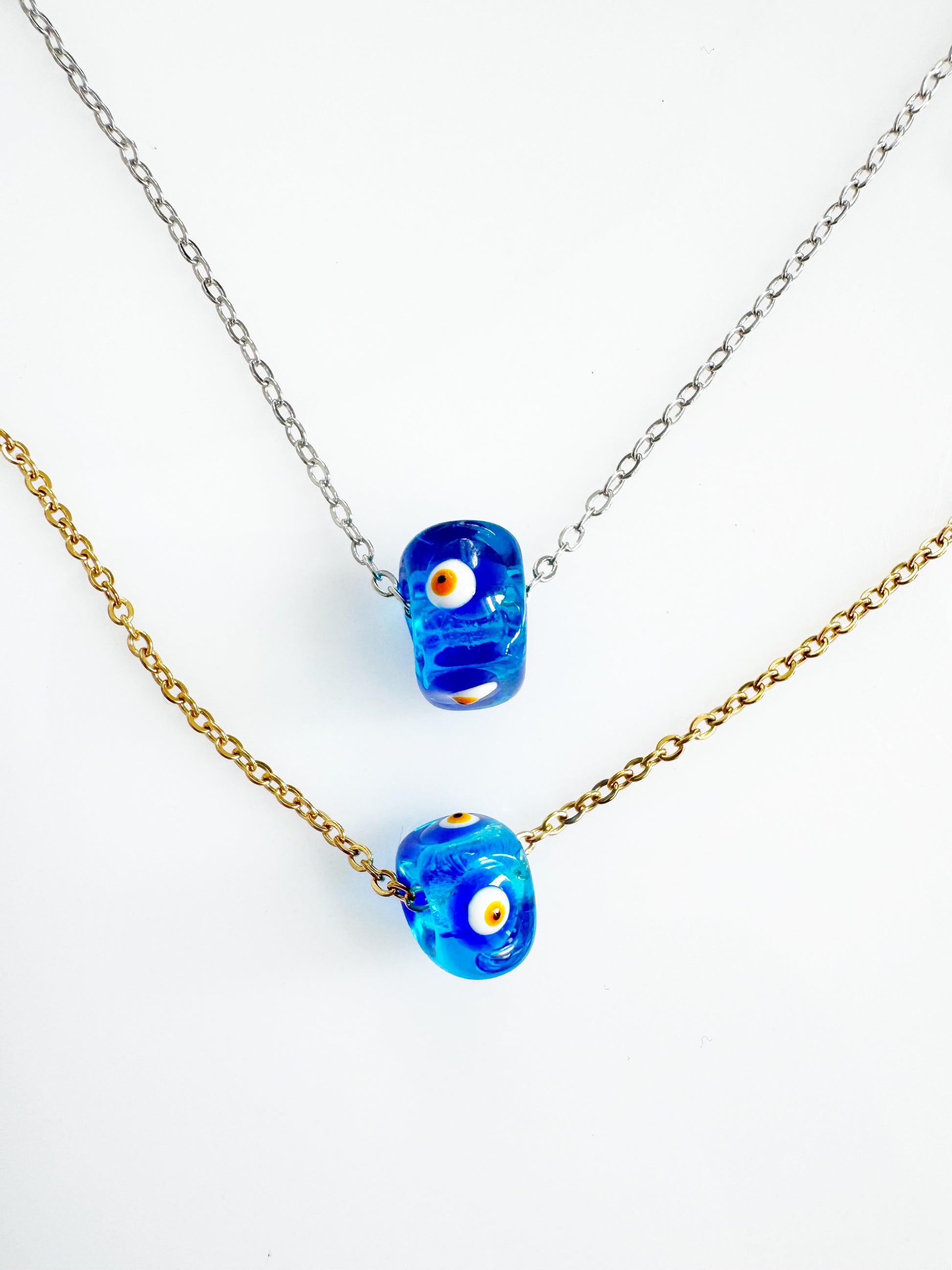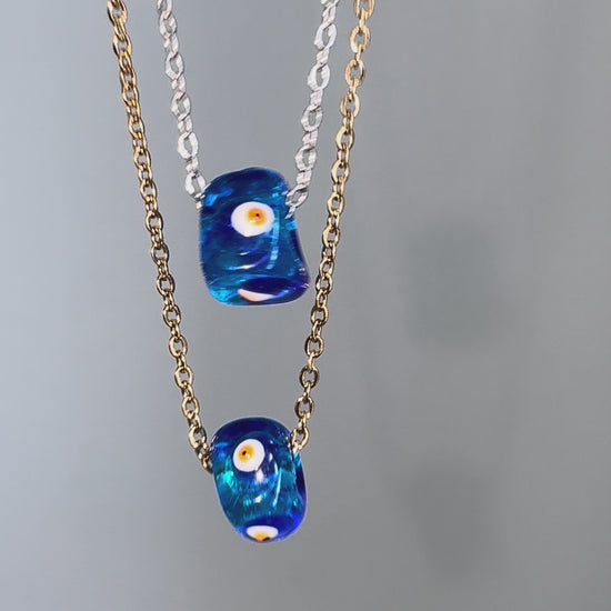 This handcrafted glass cube charm features a four-sided evil eye design, offering protection from every angle. The transparent blue glass catches the light beautifully, creating a soft, ethereal glow that’s both subtle and powerful.