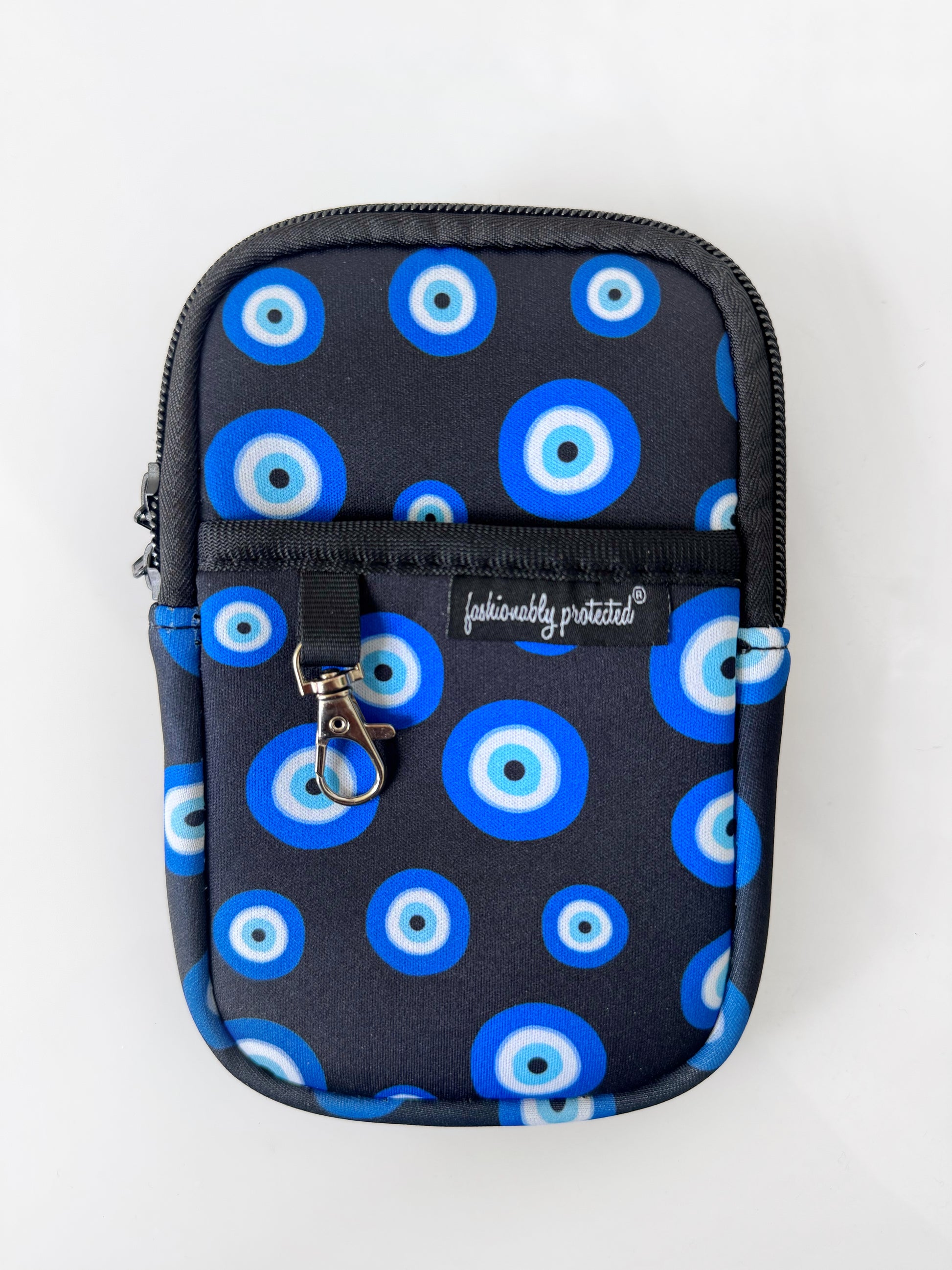 Meet your new daily essential — the Evil Eye Zipper Pouch with Velcro Grip, designed to wrap around your Stanley or tumbler and keep your keys, cards, and energy protected.