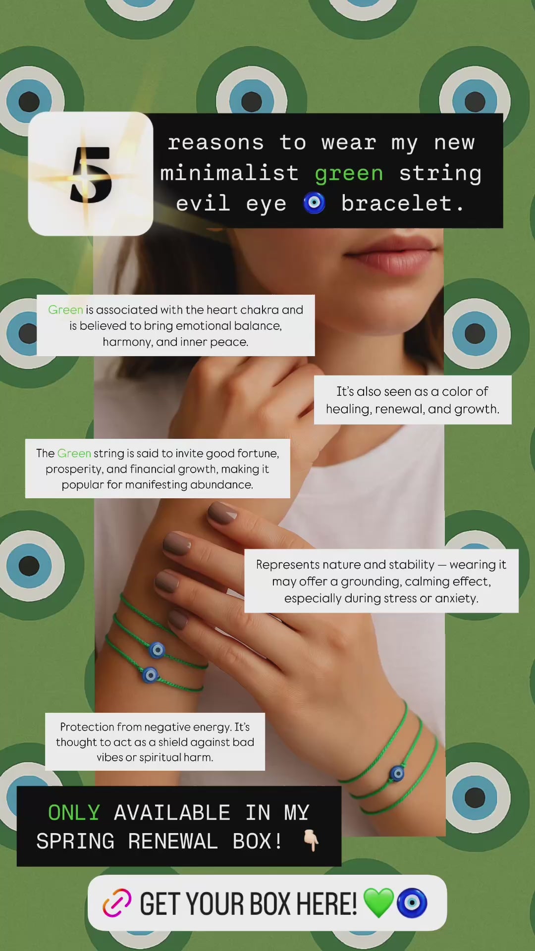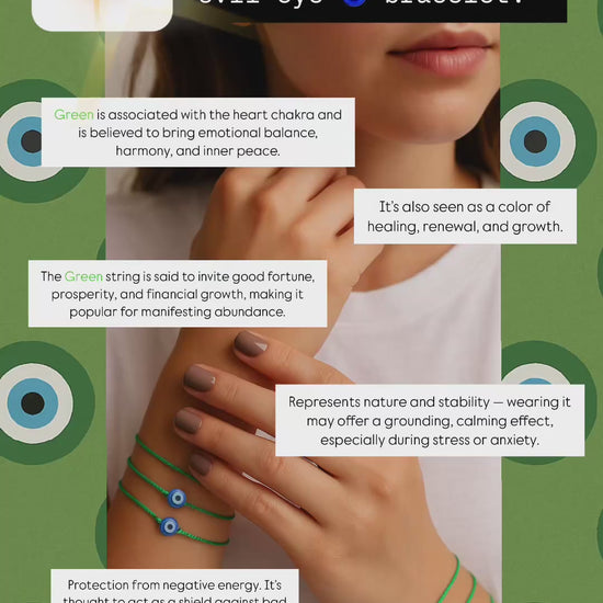 This green string evil eye bracelet is more than just a pretty piece—it’s your daily dose of grounded energy and timeless protection. The vibrant green thread symbolizes growth, balance, and renewal, while the classic evil eye charm deflects negativity and envy with quiet strength.