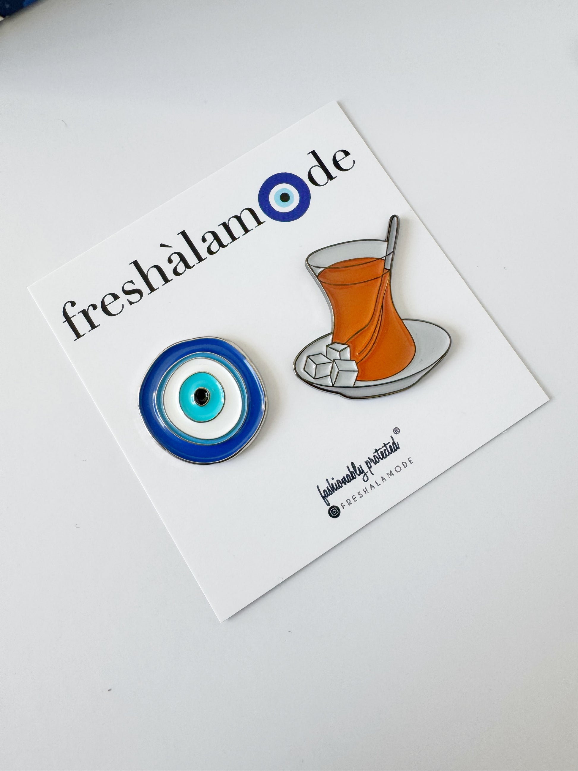 Featuring the iconic evil eye for protection and a classic Turkish chai glass (because everyone knows an OG chai), this duo brings meaning and personality to your phone, laptop, iPad, notebook, or any smooth surface.